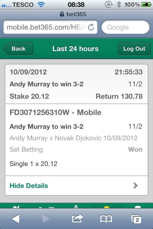 I cashed out when he was 2 sets up.