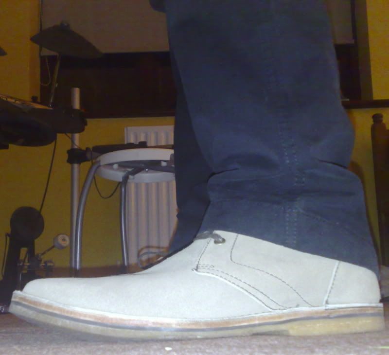 the sole on the s/s 08 pair are what they look like just after wearing them out once for a few hours, looks like the leather soles on these will wear out pretty quick. not sure if getting a dainite sole on my suede pair would suit them though, i think its fine with the leather pair as they'll be used day to day and will get beat up a bit.